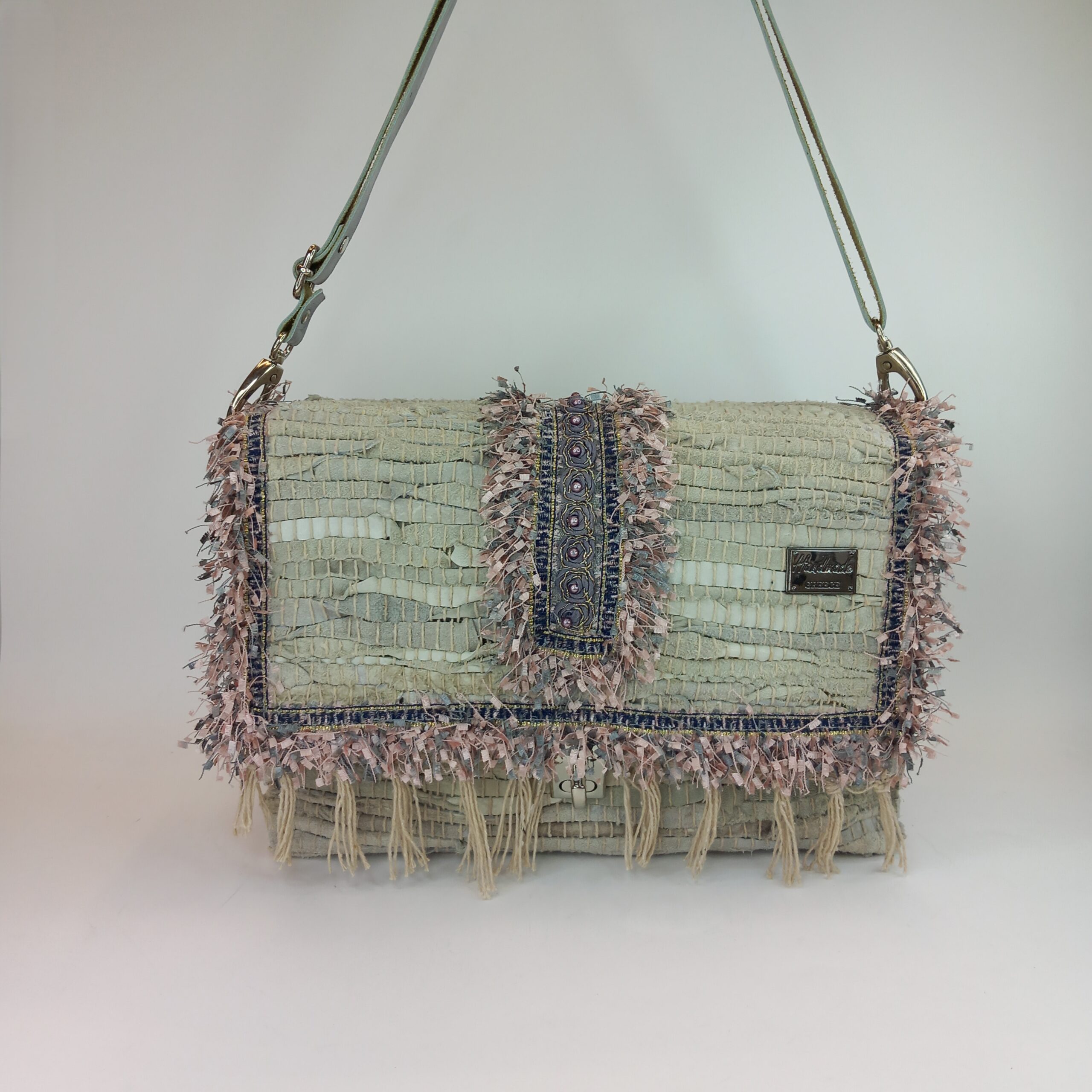 Χειροποίητη boho υφαντή τσάντα από 100% δέρμα