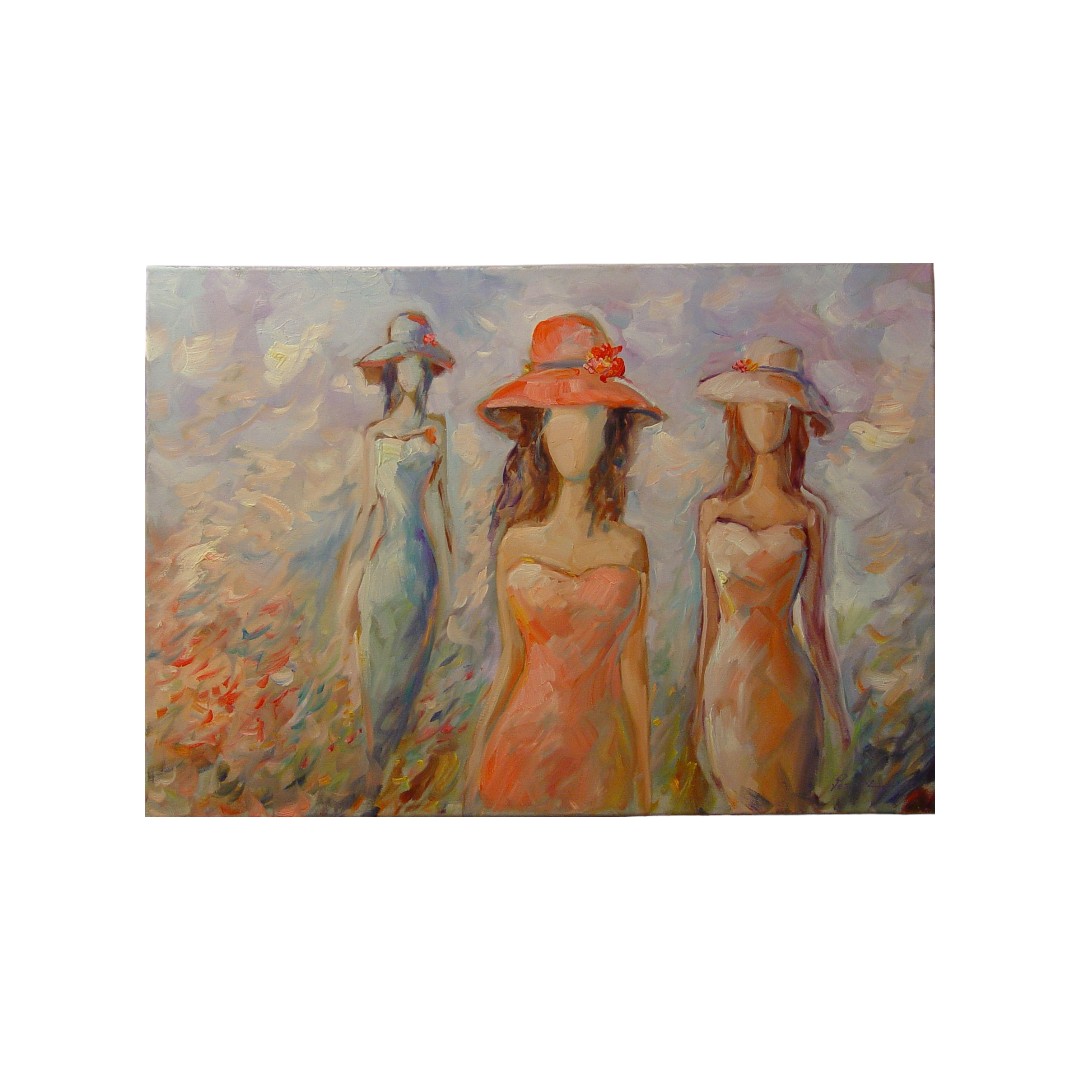 με καπέλα σε έναν ανθισμένο καμβά, όπου οι ελεύθερες πινελιές