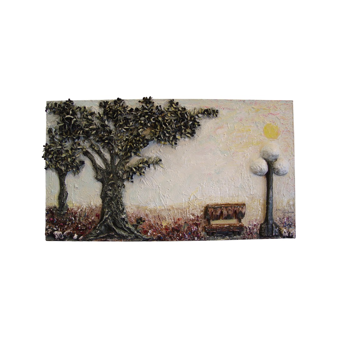 το δέντρο “ξεπηδά” από τον καμβά, προσφέροντας ένα απτό καταφύγιο